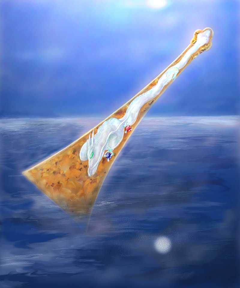 恋人を想う内容の音楽ではありません。ストー リー上の強引な解釈ということで、お許しを・・・ 千の姫宮は。 龍をとじこめた琥珀の撥(ばち)を手に。 誘われるともなく、その水の琴に、 お膝の琵琶を合わせておられました。 水の神様だ。このお方は。 月夜に広がる透明な水音の細波(さざなみ)。 けざやかに冴える撥音(ばちおと)は、水面(みなも)を跳ねる銀の魚。 ふたつの音色がひとつに溶け合うままに。 どれほどのときが、過ぎたのでございましょう。